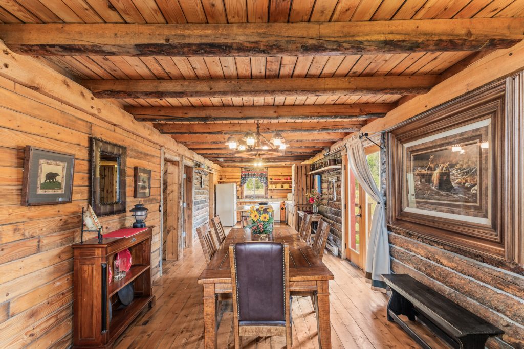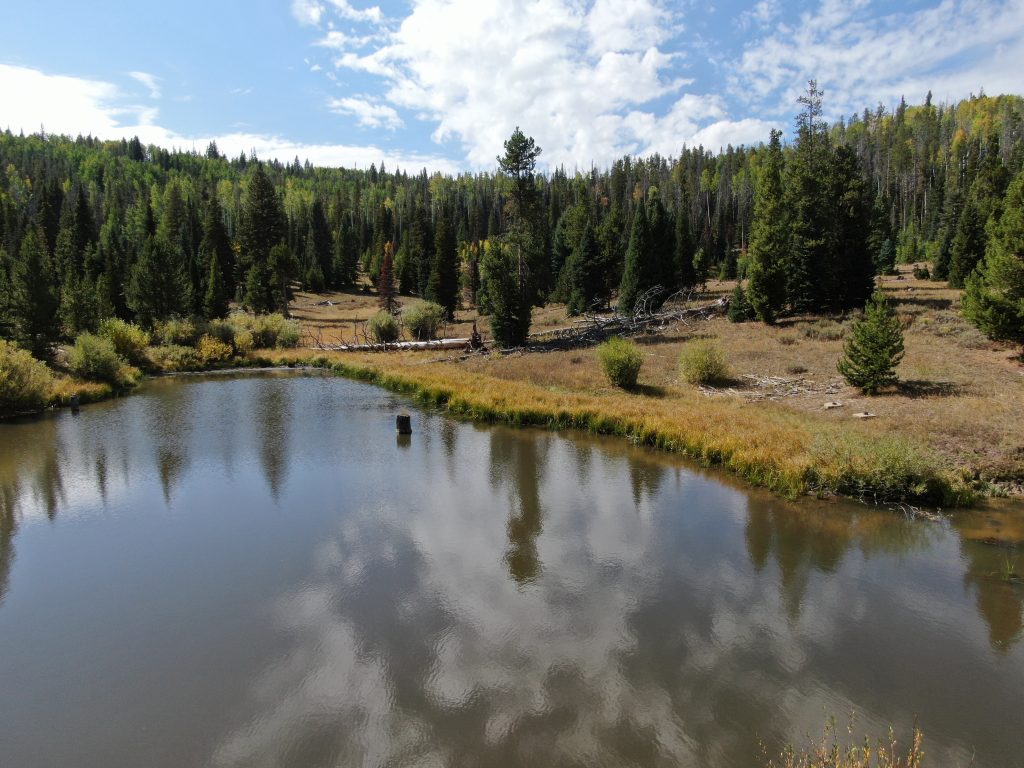 A spring-fed pond on the property serves as a water source for livestock and attracts abundant wildlife, including elk, deer, moose, bears, small game, and diverse bird species. Water rights are adjudicated, and a reliable well services the property, ensuring self-sufficiency in this pristine environment.
