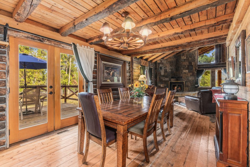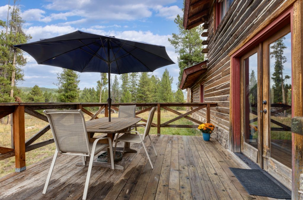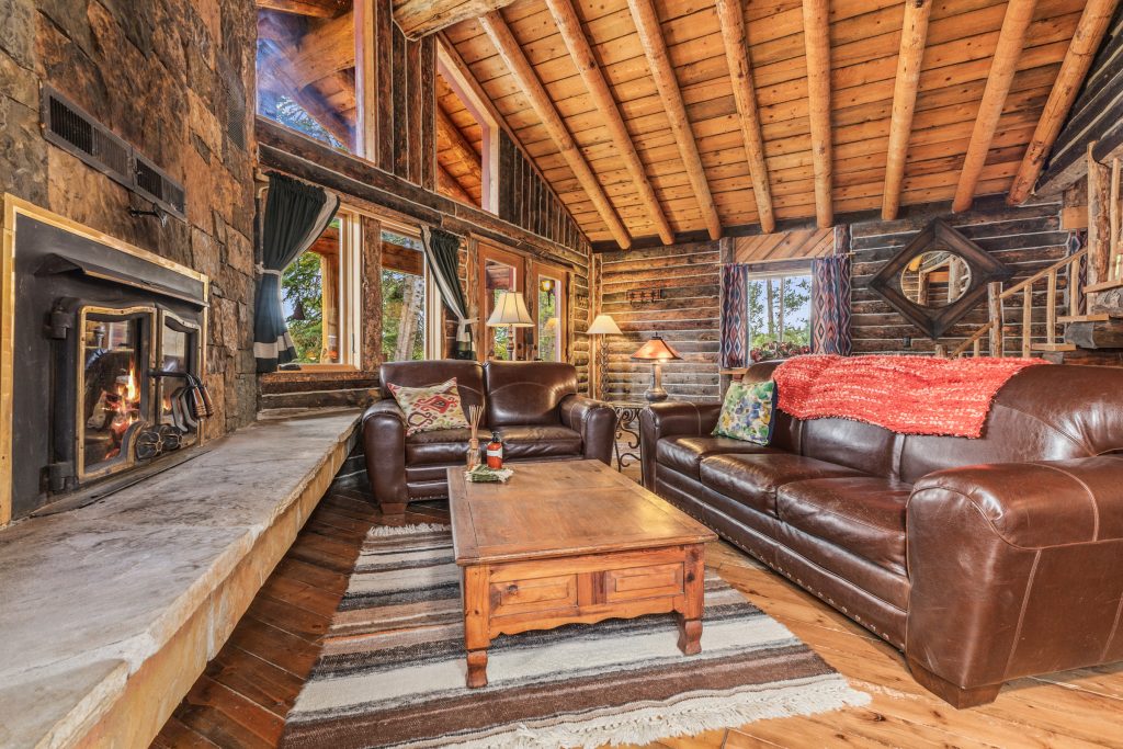 The retreat includes a charming 3-bedroom, 2-bath log cabin, perfect as a full-time residence or seasonal getaway. Complementing the cabin are an oversized 2-car garage and a detached studio, providing ample space and functionality. The property is fully fenced, and a grazing lease with a local rancher keeps property taxes low, enhancing its appeal.