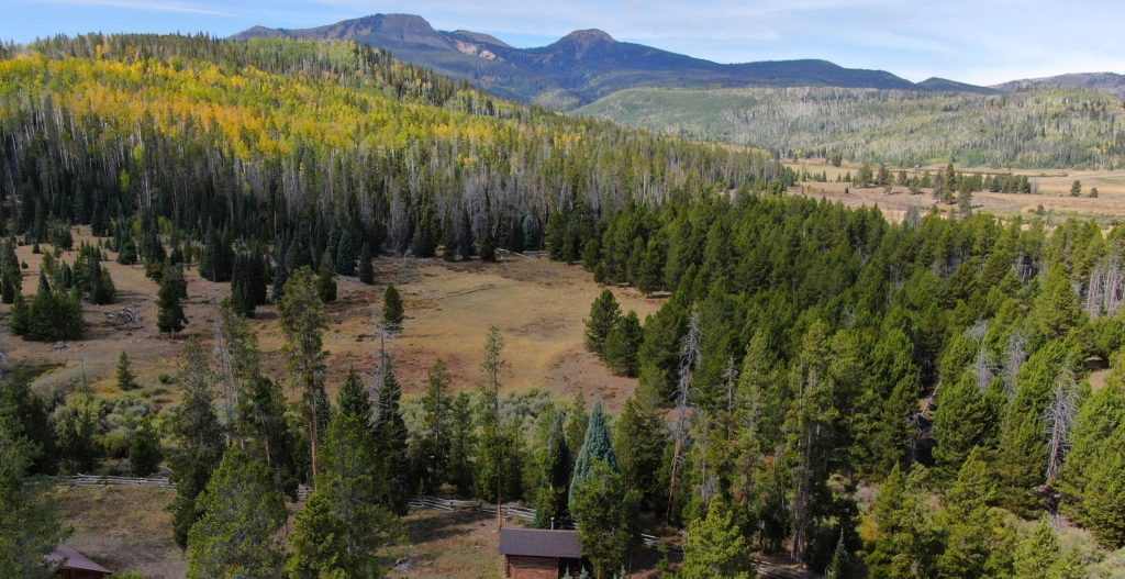 Comprising 53 acres and bordering over 1 million acres of national forest, Red Creek Retreat lies in one of Colorado’s most scenic regions. Totaling three lots, this property features a rustic, meticulously maintained log cabin, embodying the quintessential cabin-in-the-woods experience. The alpine setting offers breathtaking views, with the property accessed via a private lane off a year-round county road. The drive winds through evergreens, opening to expansive meadows with a stunning view of Sand Mountain.